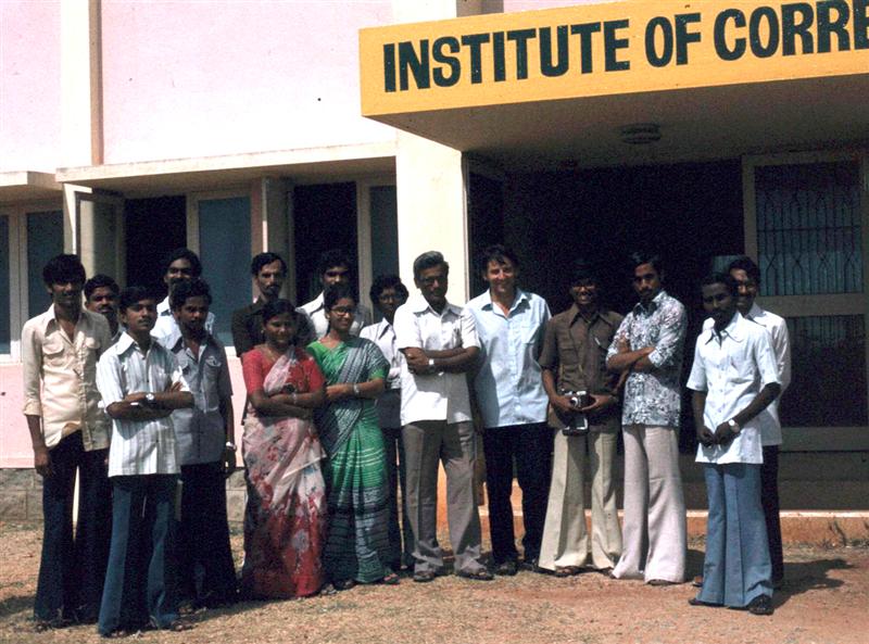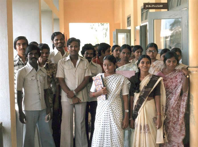 | This was my first visit to India. To visit the Botany Department of Sri Venkateshwara University as a guest of the British Council and Professor M.V. Naidu. I flew by way of Sri Lanka, Madras to Tirupati airport. I stayed in the SVU guest house. The picture shows the welcome arch on the road from SVU into the town. The road is now a dual carriageway.During my 5 week visit I also flew to Hydrabad, the capital of Andhra Pradesh to lecture at the Centre for Cell and Molecular Biology. I taught microbial physiology to MSC botany students and a few lectures in The Biochemistry Department [Prof. Venkaiah] |