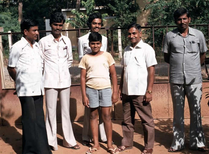 | Botany staff: ??, Sreeramulu, Naidu and Sreenivasulu. In the middle is Chowdappa [Student] and Naidu's son | |