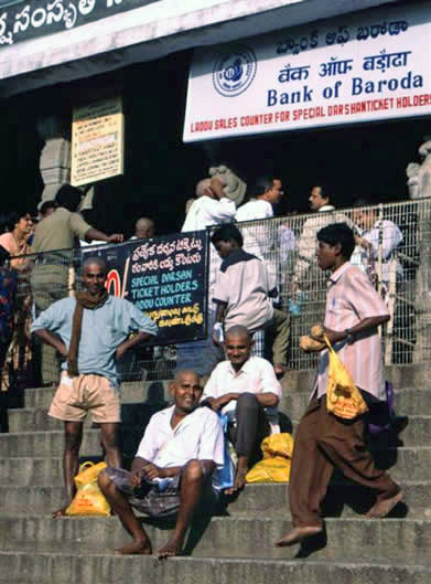 | Pilgrims with shorn heads [hair donated to god] | I think this is where the hair is cut |