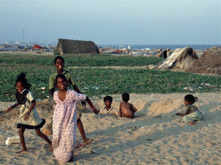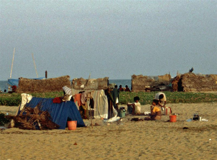 | My friend Sivamani with his father [a fisherman who had moved from the beach to the nearby new houses [they call them the slums] |