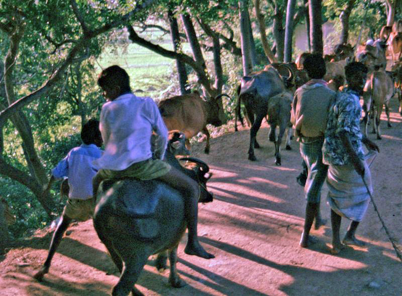 | A buffalo boy at the bird sanctuary Vedentangal near Mahabalipuram | |