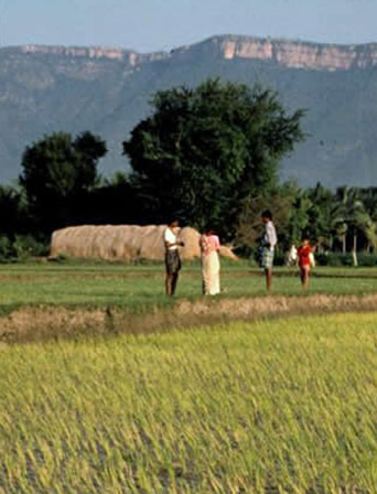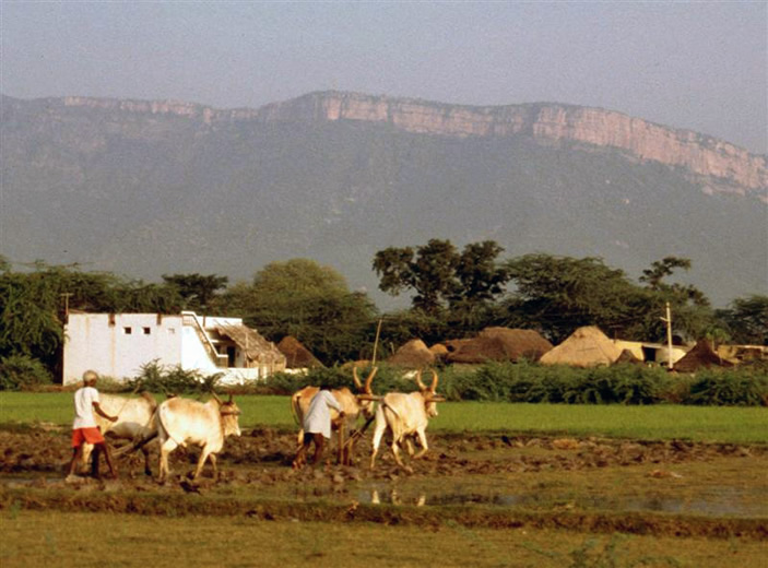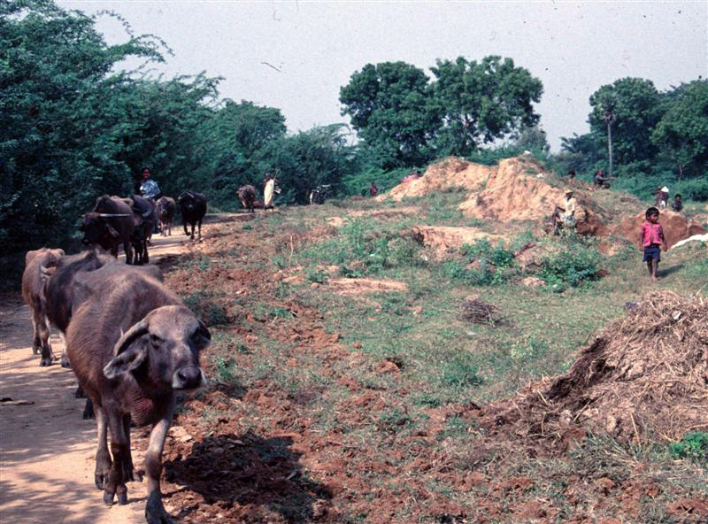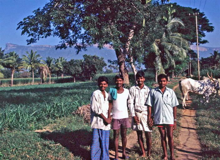 | The village is south of the guest house. These pictures show that it is hardly changed since 1984 but they had just started to pave some of the paths leading to it. Many of the fields are now filled with houses and the nice tracks are hard stony roads. Tummala Gunta Panchayat is the local council for the village itself and 4 other villages including the one nearby that I visit that is called Uppara Palli. NB: variety of spellings can be ignored. Most of the labels are correct but there may be some errors as I cannot always remember which village i was photographing. | |