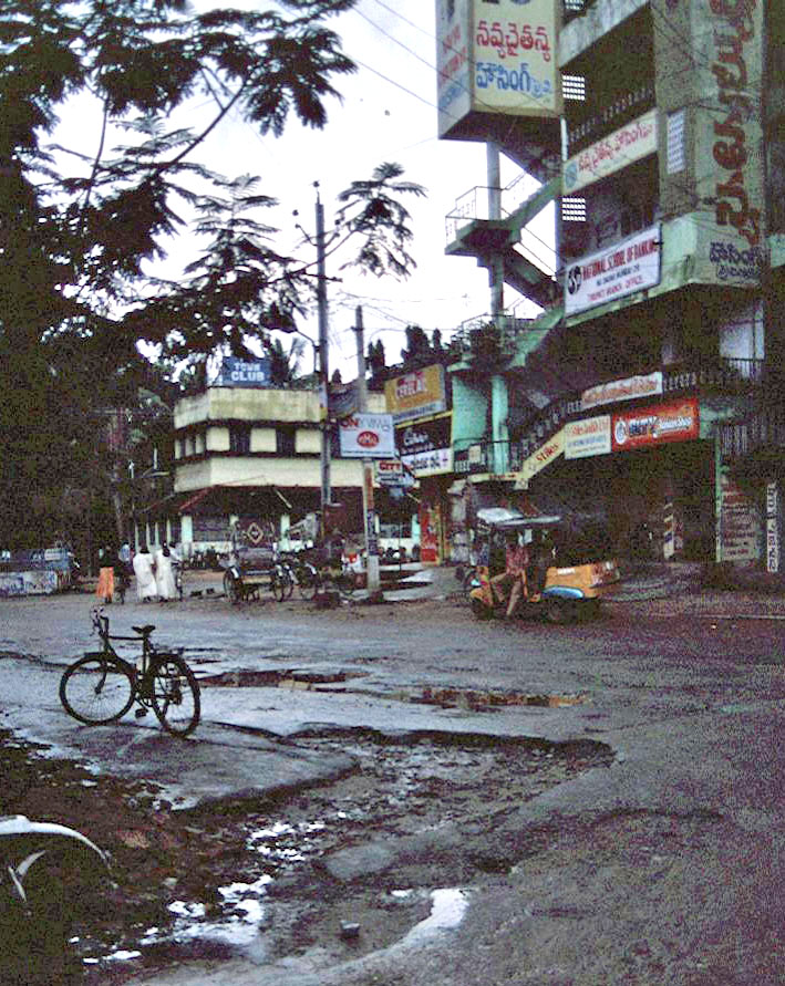 | At junction of Gandhi Road and 'garland road where they make garlands. (name please) | ||
