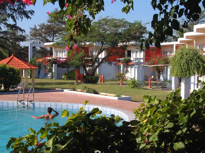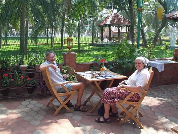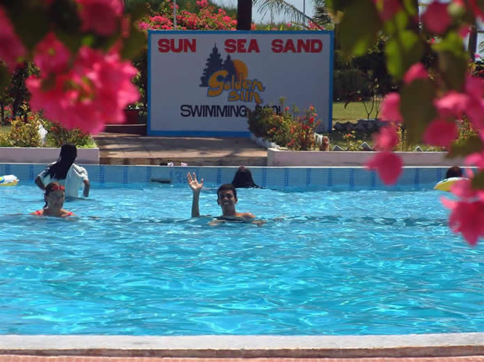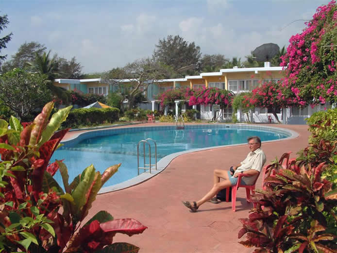 | Our 'open' restaurant at the Golden Sun Resort | Madhu at the pool | |||