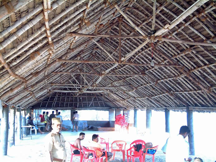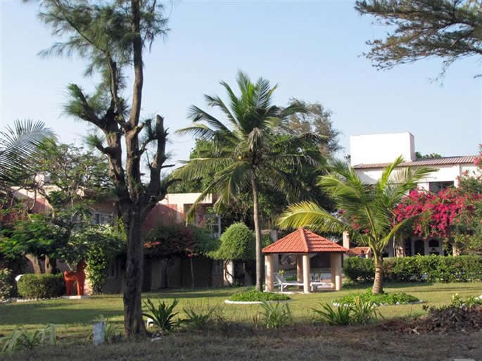 | Wonderful pool, Bourgainvillea and the poolside rooms where we stayed | The resort beach 'hall' | |||