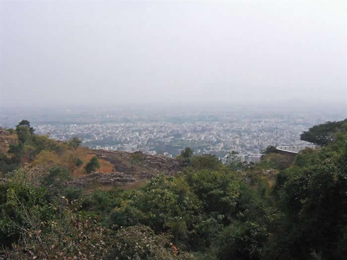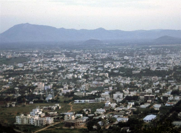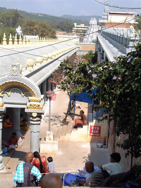| Tirupati from our winding mountain road | The gopuram | |