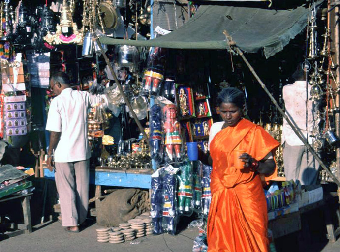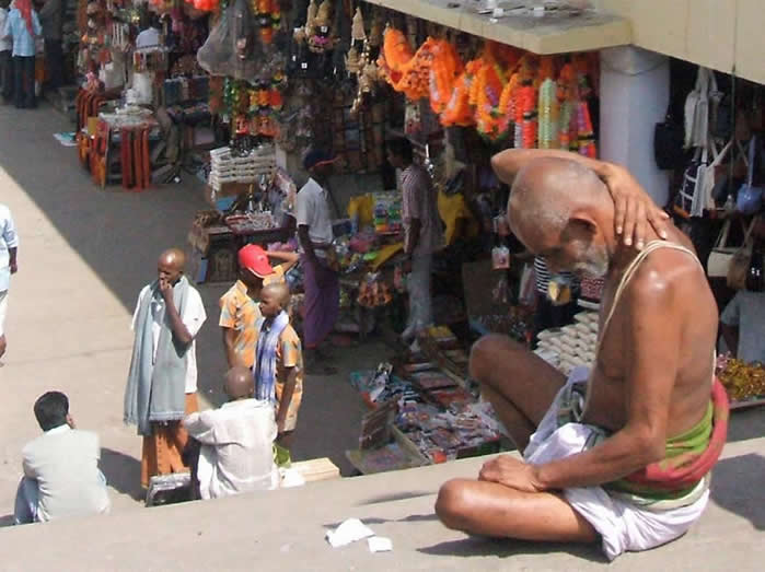 | Entrance to the place for offering hair. A quarter of the world's wigs come from here | Like all major religous centres there are the shops for buying presents | |