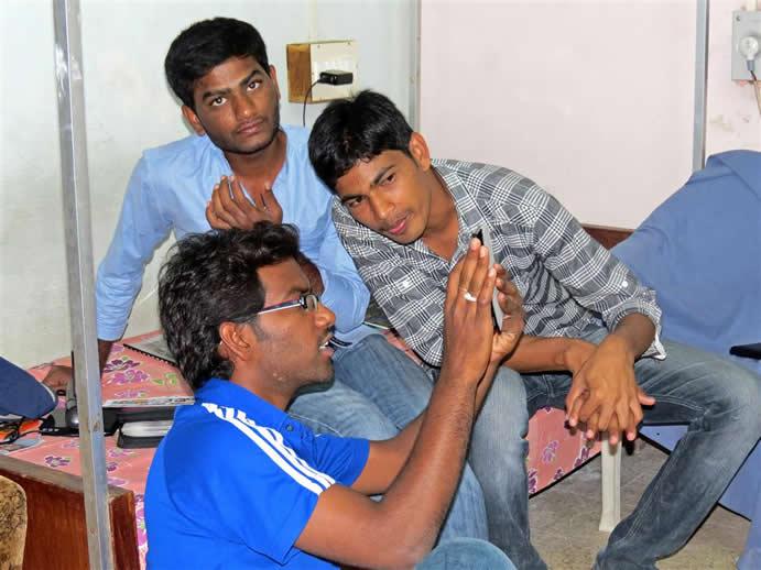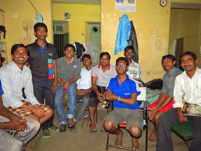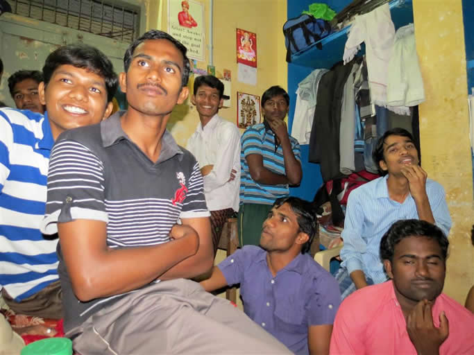 | In hostel. Srinivas (2nd from right) became a friend | Such a welcome sight at start of 9.30 lecture | |||