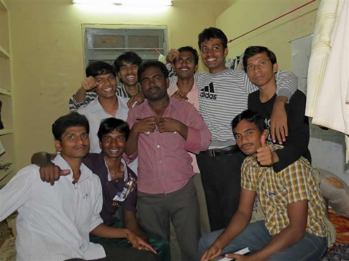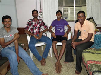 | Visiting the guest house | In their hostel. The highest proportion of smiles ever. Shekar is in front. | |||