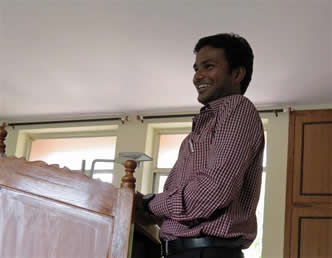 | Sudarshan is looking at camera and Satish is behind him. | ||||