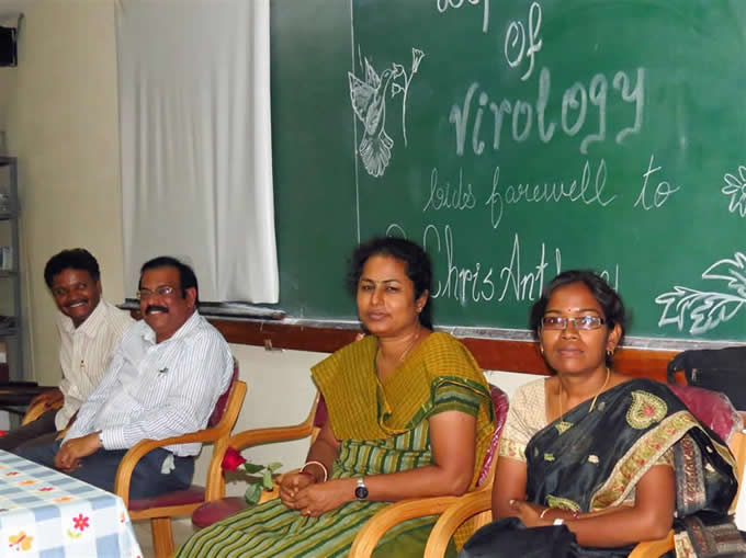 | Final year Virologists: front two are Suresh and Mallikarjuna | 1st year microbiologists | |||