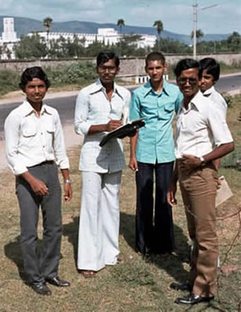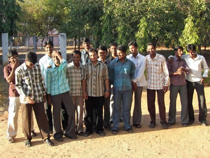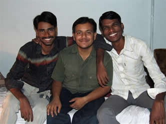| Virology/microbiology students in hostel. Always helpful Bhuvaneswar, is on left of picture | Final year Virology student friends. Small centre friend is Mastan. On the right is Chinna (sorry have lost other names) | |||
