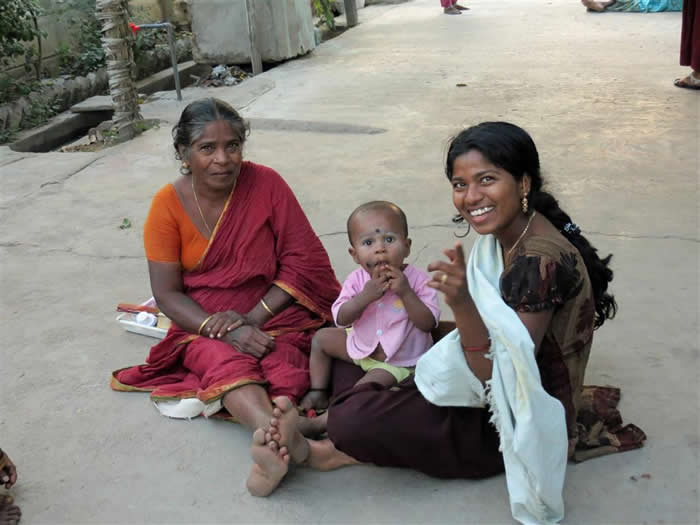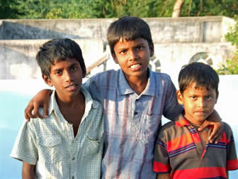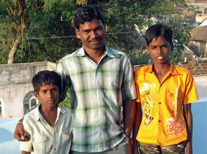 Balaji and Venkat with Venkat's mother. The boy in front is Mounish, later to become a friend |