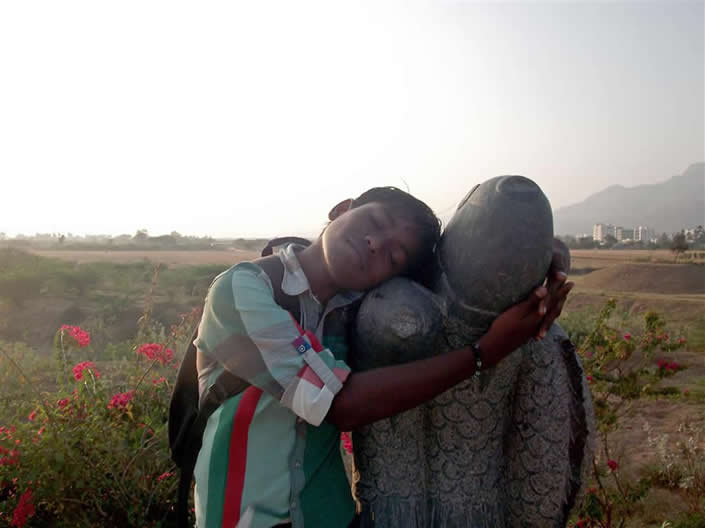 Venkataramana, one of the little boys who first invited me to the village - with Balaji |