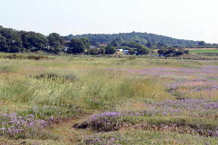| Distant view of the campsite from the marshes | ||||