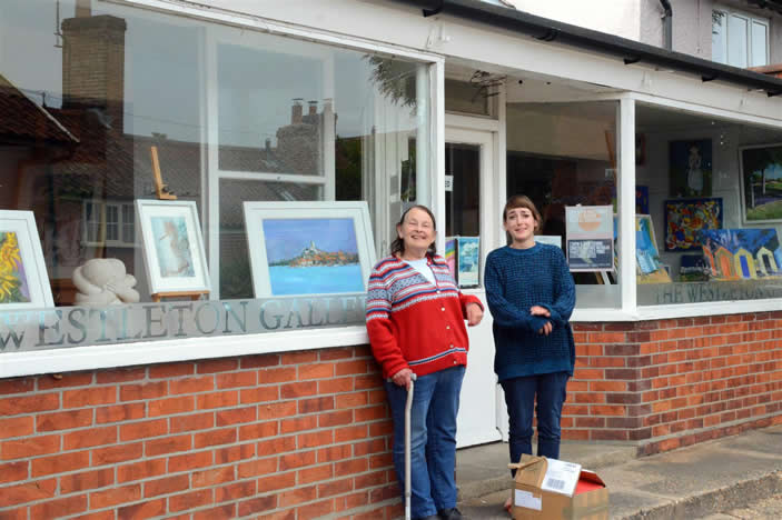 | Westleton Gallery with owner and her daughter, the wonderful proprietor of Barnabees | The church | |||