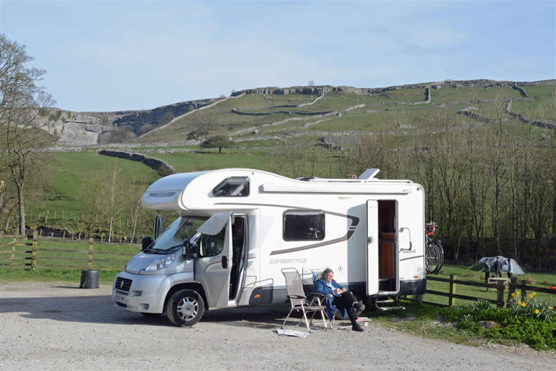 Camping in the North and Scotland 2017 Return to main Camping UK page Kings Sutton (home of Peter and Dot Evans); Bedale, Duddo (Nigel’s home); Glencoe ski resort; St. John’s Town of Dalry in Ayr; Malham Cove in Yorkshire Dales ; Brundcliffe Farm in Derbyshire Dales; Home. Total 1208 miles. |