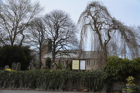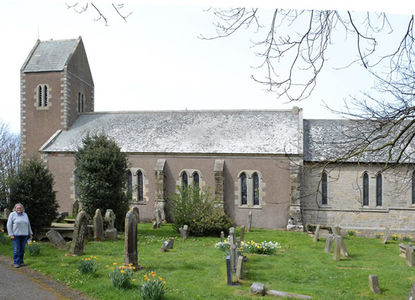 | The Churchyard at Lowick where Liz's ancestors lived and where many are buried. There are memorial windows to some of them | |
