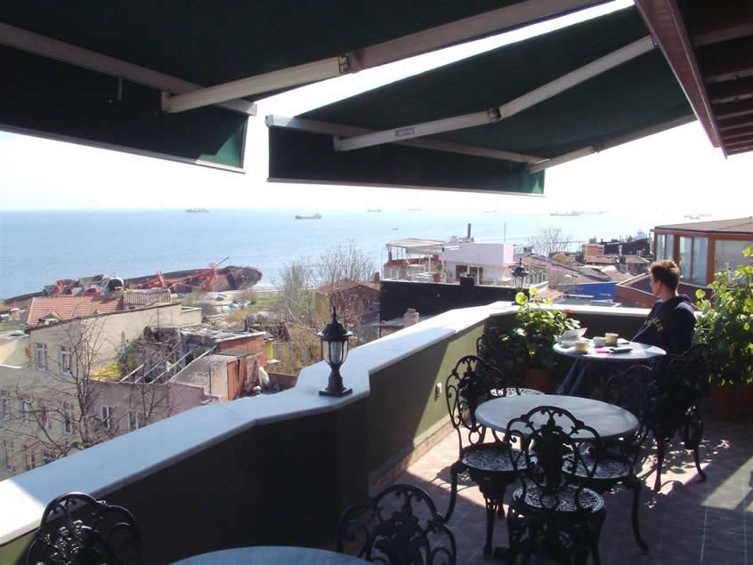 | Leigh in our hotel roof top restaurant overlooking Bosphorous | |