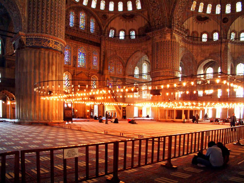 | The Blue mosques with our hotel in foreground at base of the middle minaret | |