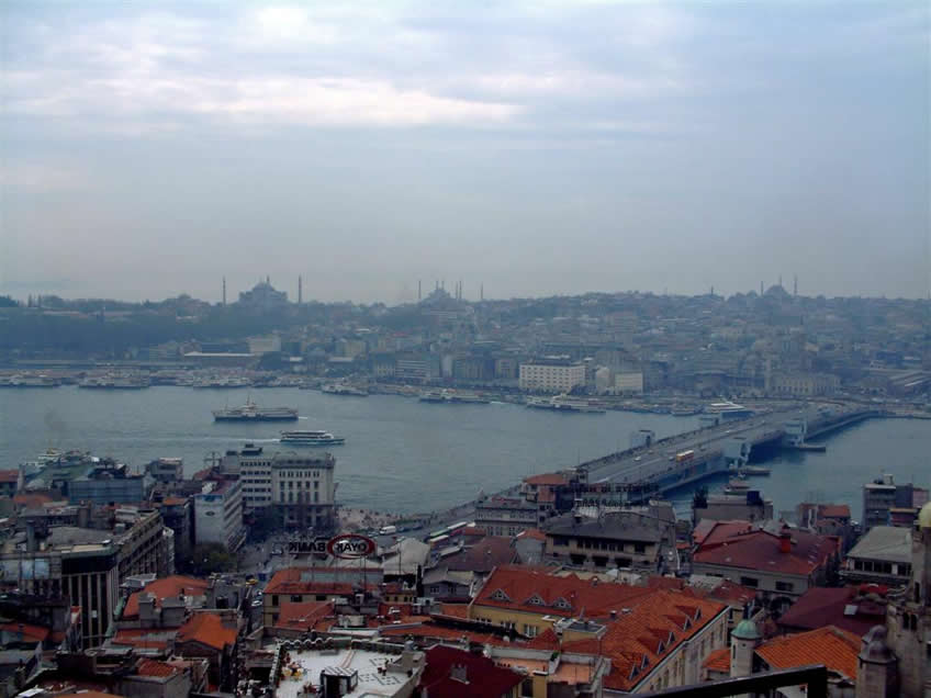 | The start of the Galata bridge. The following pictures were taken from the tower opposite | |