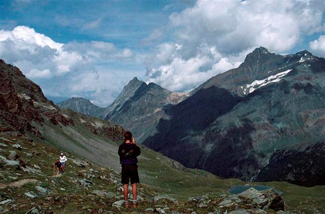 These pictures were scanned in from my slides. They were taken during a walk in the Paradiso National Park, starting at our campsite [at 5,500 feet] and going to the col [10,000 feet] looking toward Val d'Isere in France.