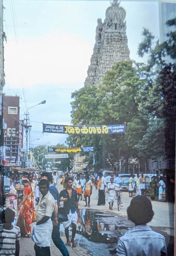 | Madurai is in Tamil Nadu, South India. I flew to Madras (now Chennai), thence to Madurai. After the conference I went by bus to Kerala, by way of the most soutern tip of India, to a beach resort (at Kovalam Beach, (near Trivandrum), where I lived in a luxurious beach hut (made of brick and air-conditioned). I returned home by by train to Cochin (near Ernakulam), flying home from there by way of Madras. | ||