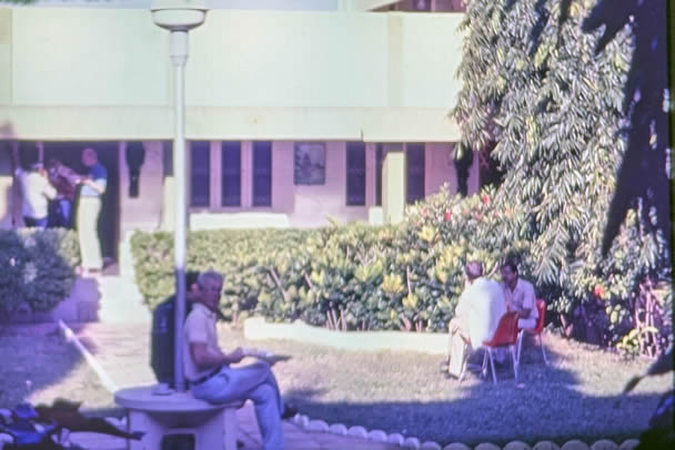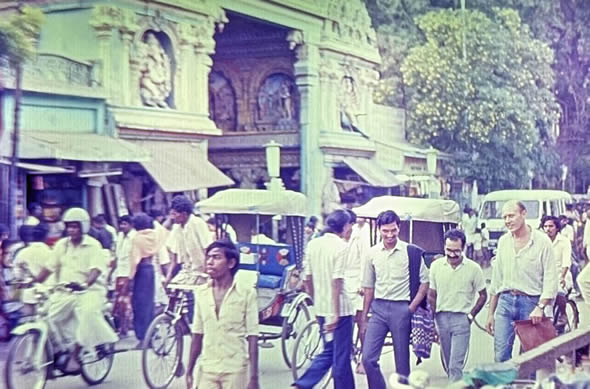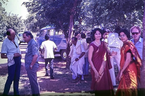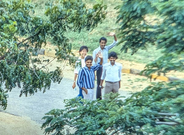 Madurai 1985 I was the main lecturer on the 4 week course on biological membranes sponsored by UNESCO in the School of Biological Sciences at Madurai Kamaraj University, organised by the head of the School C. Rajamanickam. The 4th week was The II International Symposium on Biomembranes: Structure, Biogenesis and Transport, organised by Rajamanickam. There were 12 students on the course, one from Iran and the others from South Asia. The University is in a rural area about 14 Km from the centre of Madurai with its a world famous Meenakshi temple. Madurai is in Tamil Nadu, South India. I flew to Madras, thence to Madurai. After the conference I went by bus to Kerala to a beach resort (near Kovalam), then by train to Cochin, flying home from there by way of Madras. These pictures are from very old Agfa slides which become overcome by magenta which i have tried to correct. |