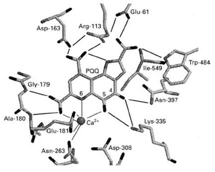 4. Anthony, C. & Ghosh, M. (1998). The structure and function of the PQQ-containing quinoprotein dehydrogenases. Progress in Biophysics and Molecular Biology 69, 1-21.