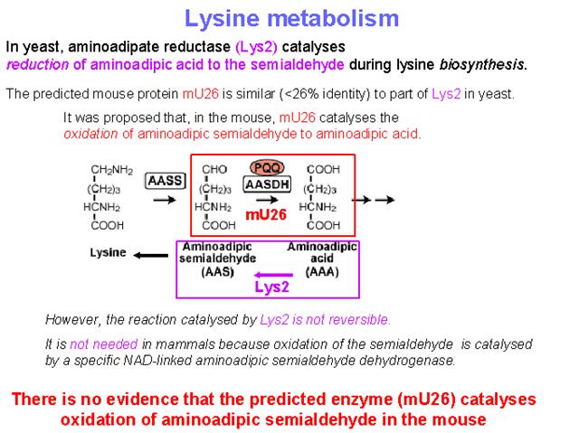 It should also be noted that the enzyme which they claim to be involved in lysine breakdown does not occur in mice; it is an irreversible enzyme involved in the opposite process of lysine biosynthesis in yeast. The whole of this part of their paper is biochemical nonsense.