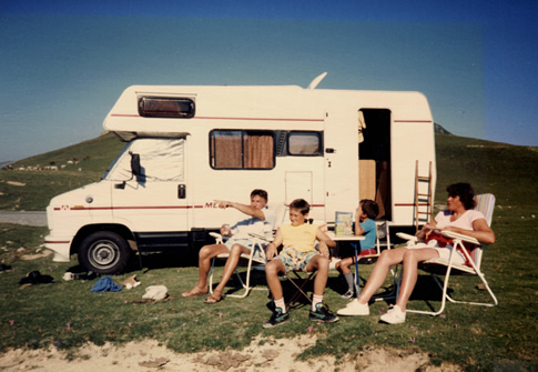 | As with many of my webpages this is mainly for my benefit. We first went camping in a very old rented Ford camper in 1989. We (Me Liz, Clive and Hugh) travelled for about a month in France. We always camped wild (Camping Sauvage) except for one night after coming down a mountain with weak overheated brakes. We went to the Chateau Queyras region - where Hannibal crossed the Alpes. In 1989 we bought a two-year old Merlin Campervan which we had for six years. This died in a crash on a motorway in France after a rear puncture. We replaced it with a five year old Swift Kontiki in 1995. After we had travelled about 60,000 miles it slowly expired and was put out to pasture in July 2014 to be replaced by a one-year old Swift Lifestyle. |